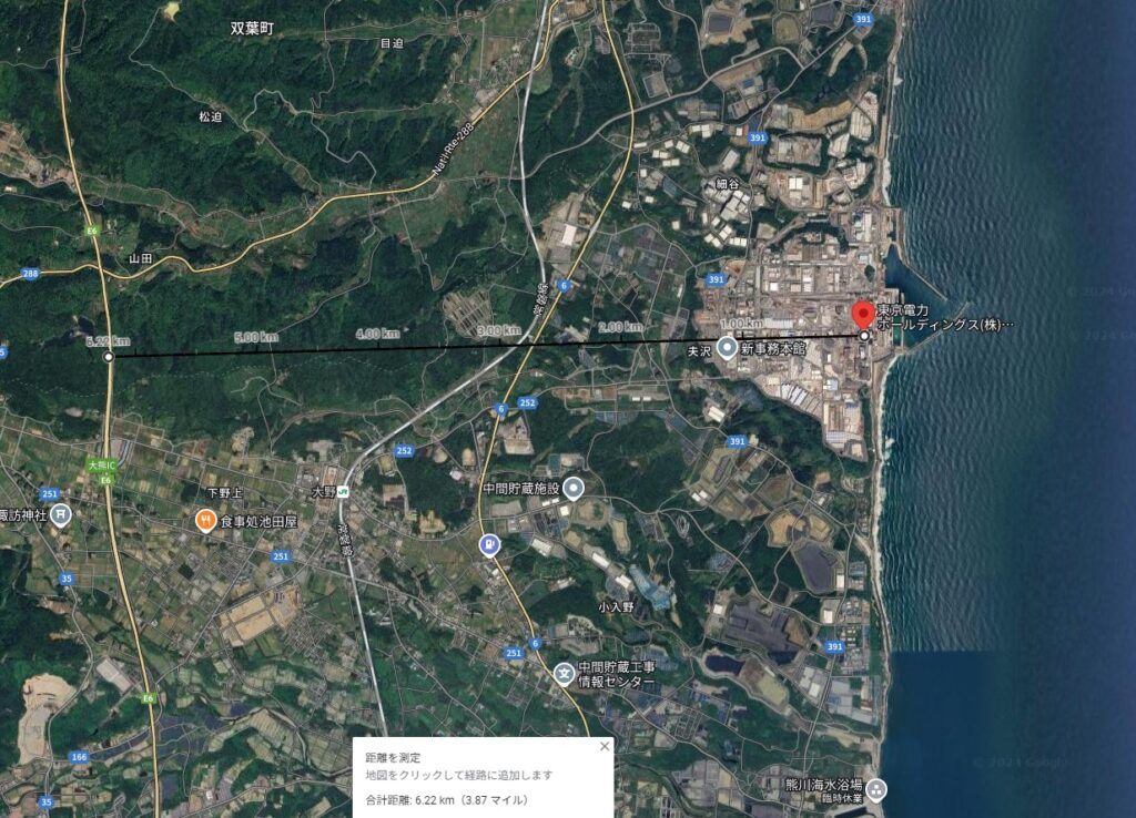 Googleマップで後で見たら、最も福島第一原発に近づくのは常磐道ではこのあたりで、原子炉までの距離は6.22kmだった。