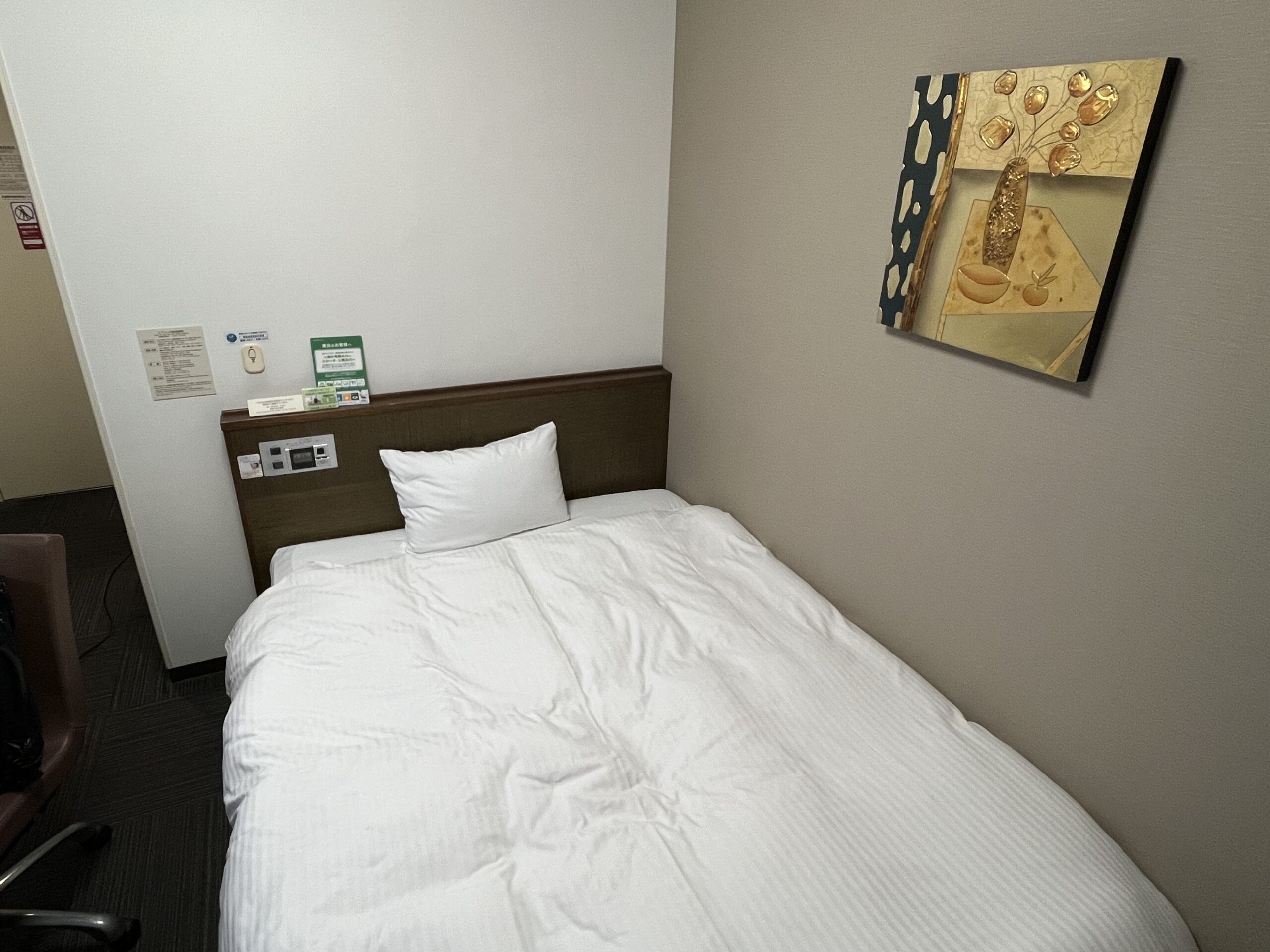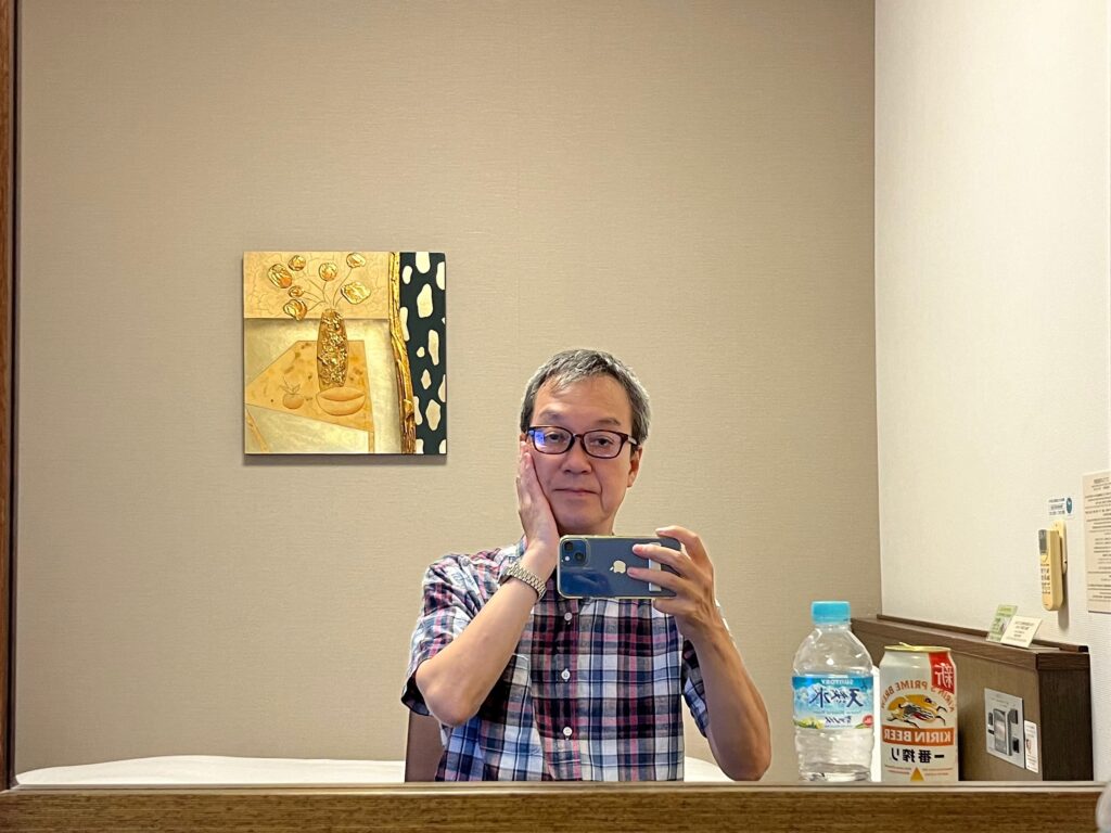 ホテルにチェックイン。今日はホテルルートイン花巻に泊まる。大きな鏡があった。