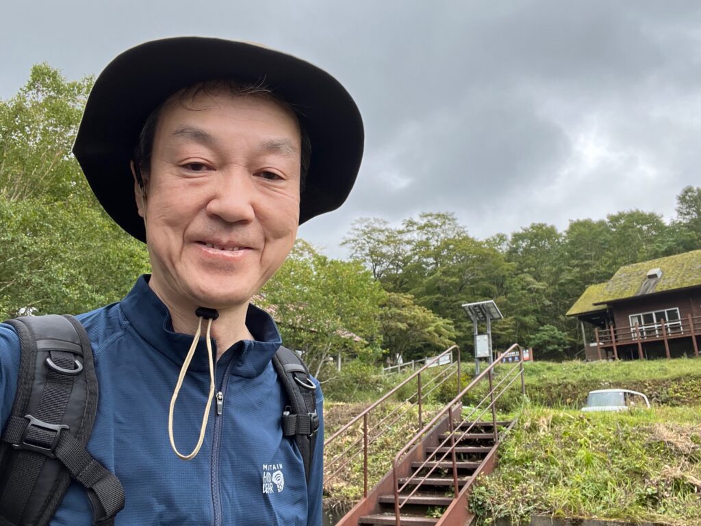 花巻市内は11時時点で31℃を越えていたが、河原の坊駐車場では11時半に21℃だった。曇って来たし、山は見えないし、霧も出ているようだ。ここは関東ではなく、東北の山であるので、雨具上下に加えて、ウールの上着も持って行く。