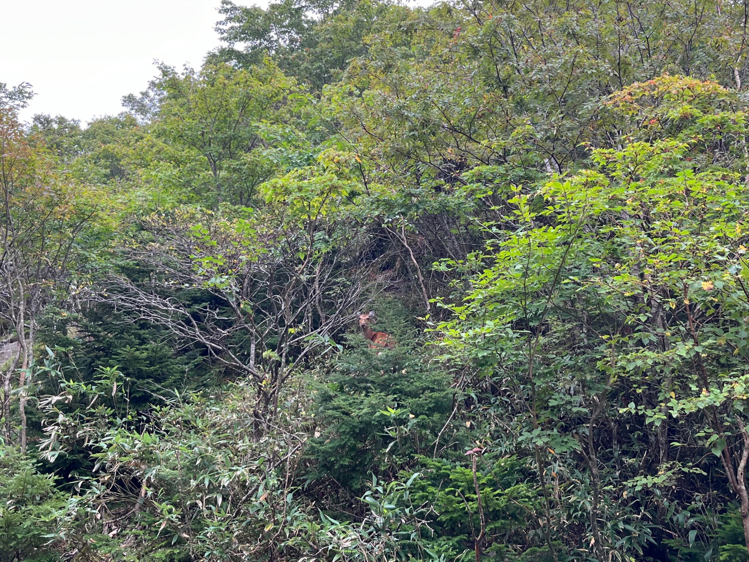 しばらく行くと、何やら視線を感じる。熊も出るらしい。周囲を警戒していると、そこには・・・ややや