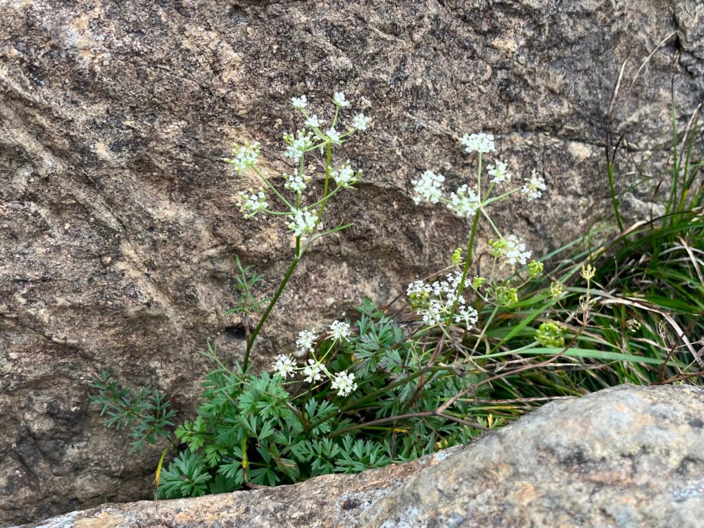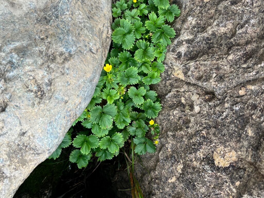 岩の間に本当に小さな花が咲いている。寒くて強風の中で花を付けているのがいじらしい。