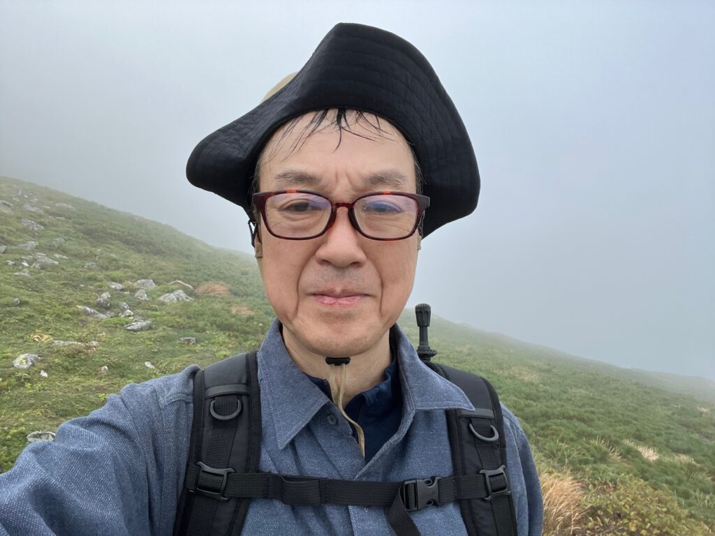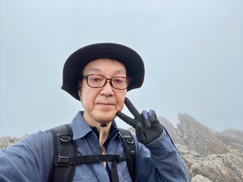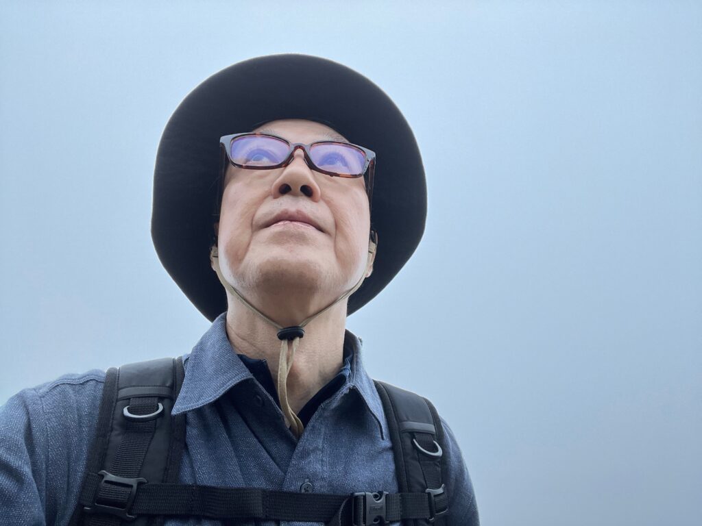 ふたたび五合目まで下りてきた。風が強い感じを表現したいので、堺雅人の顔真似をしてみた。