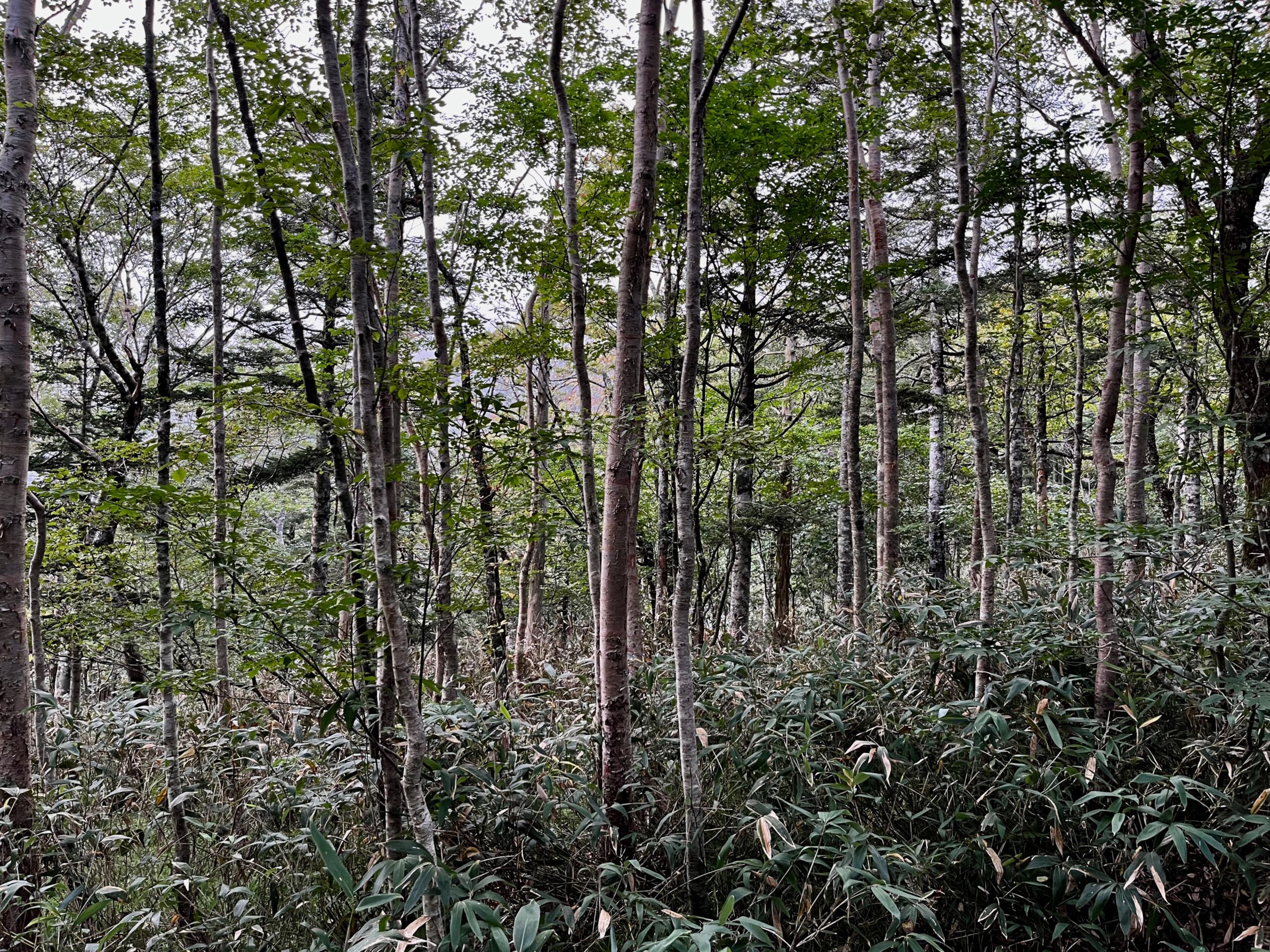 このあたりで、山頂方向から降りてきた人が、話しかけてきた。山域のパトロールの人らしいのだが、「熊が出た話はもう聞きましたか?」と言う。