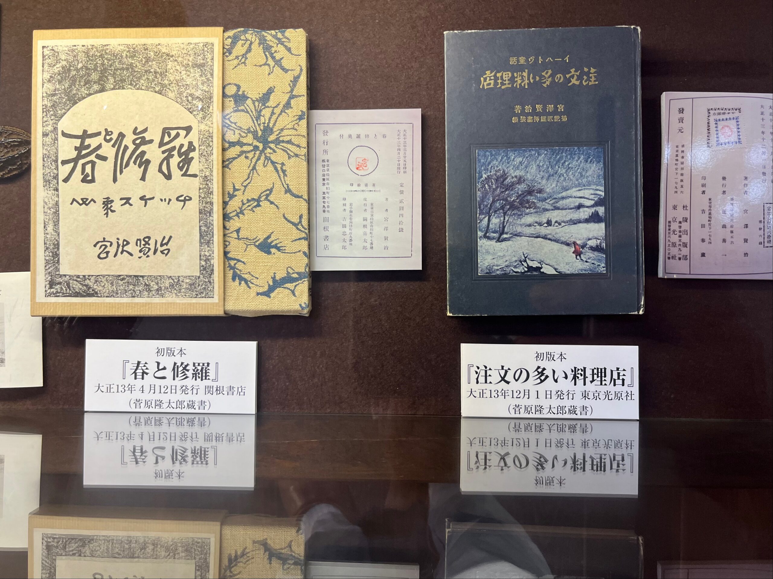 「注文の多い料理店」と「春の修羅」の初版本がガラスケースの中に展示されている。じゅるじゅるじゅる。