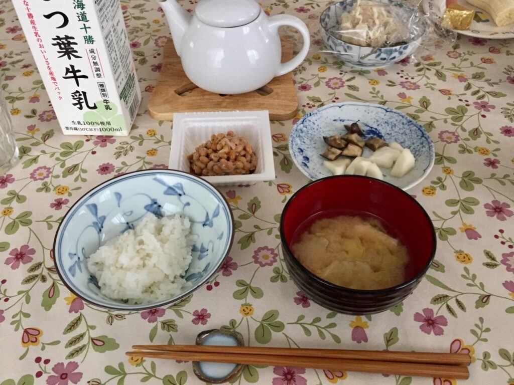 2021/04/29 朝 – 納豆、味噌汁、ぬか漬け、ご飯