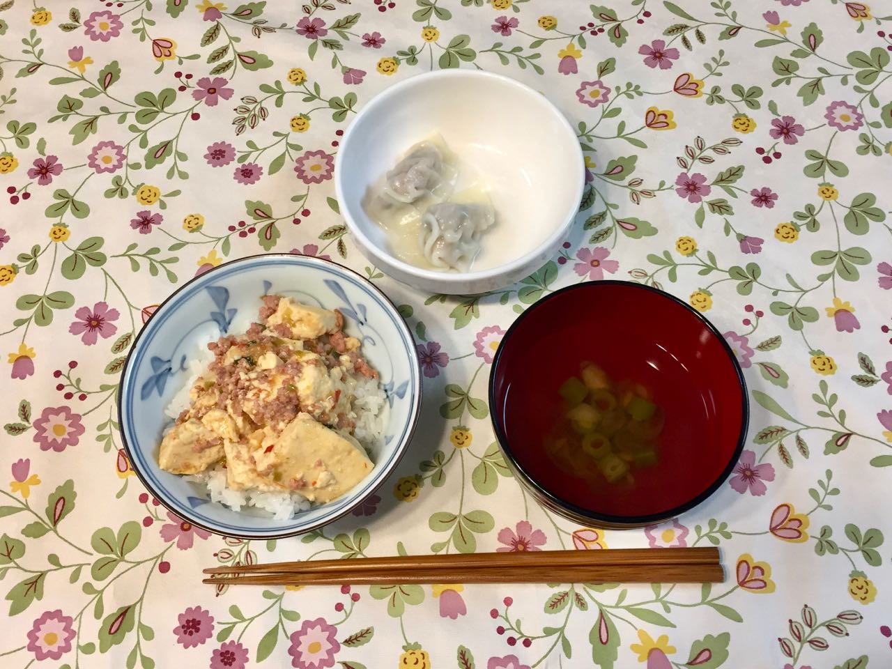 2021/05/31 晩 – 麻婆豆腐、水餃子、スープ、ご飯