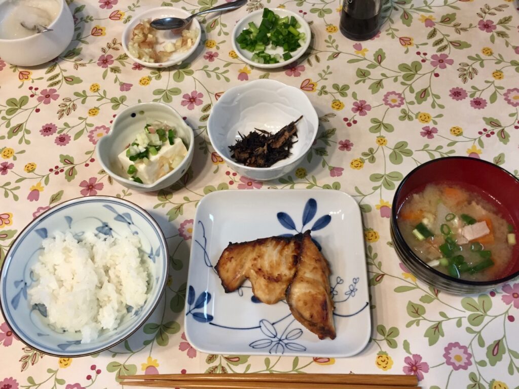 2021/05/04 晩 – 焼き魚、とん汁、ひじき、湯豆腐