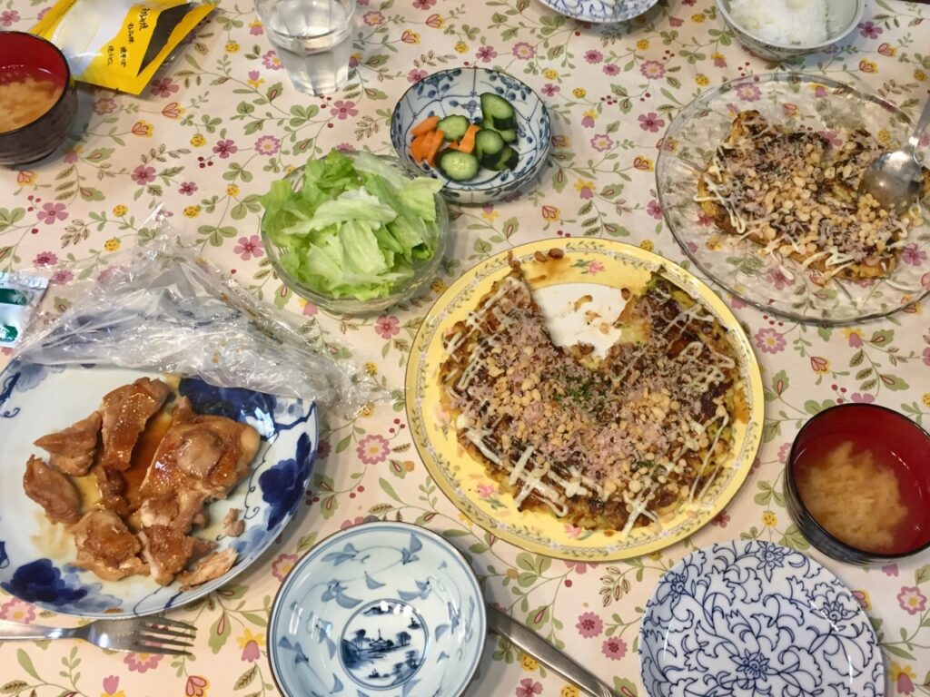2021/05/01 晩 – チキンソテー、お好み焼き