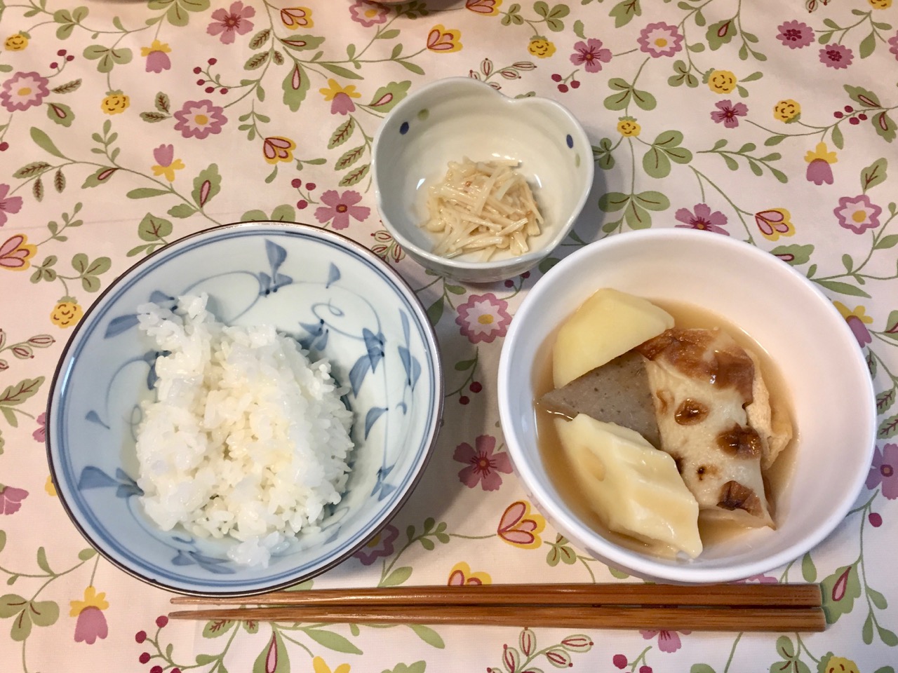 2021/04/20 晩 – おでん、えのき梅和え、ご飯