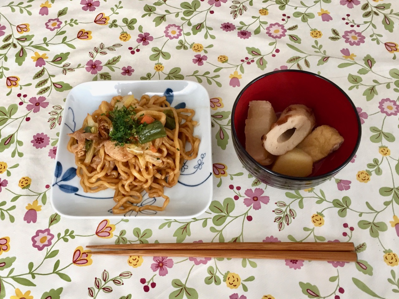 2021/05/11 晩 – 鶏そぼろ、炒り卵、おでん、ぬか漬け、海苔、ご飯