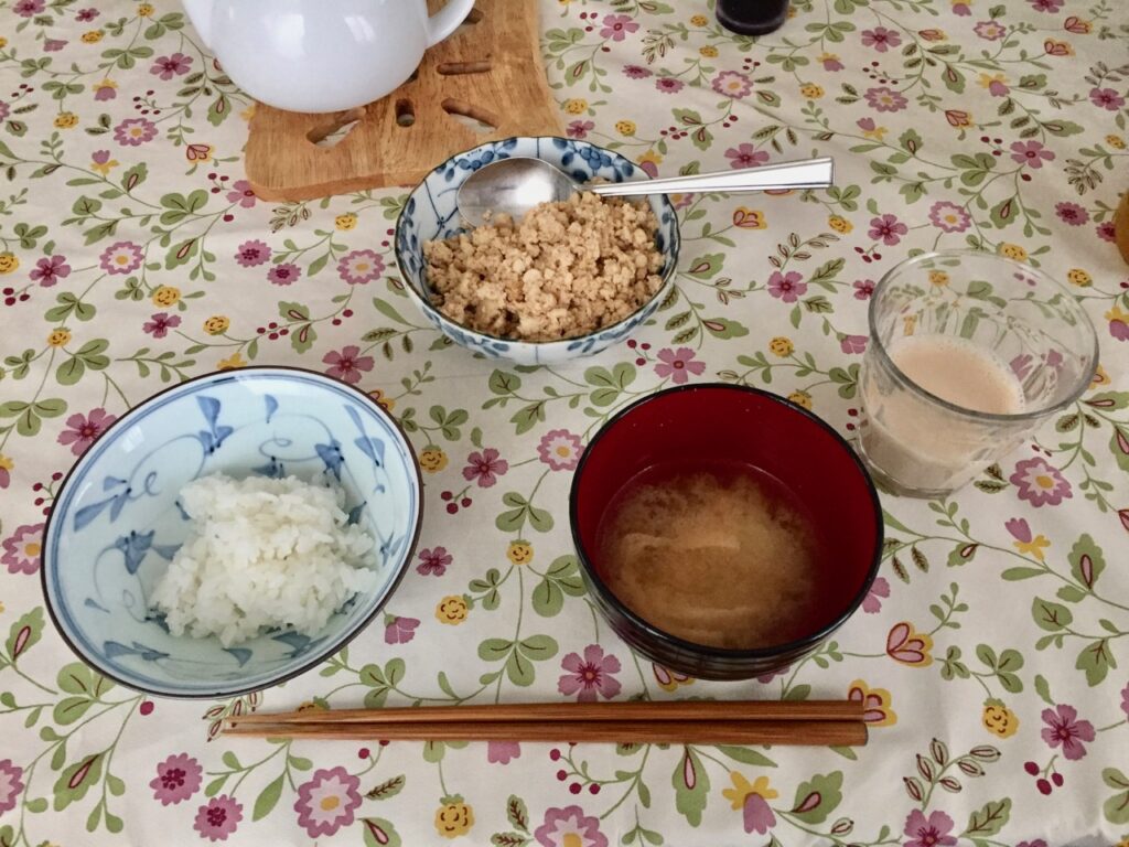 2021/05/17 朝 – 炒り豆腐、味噌汁、ご飯