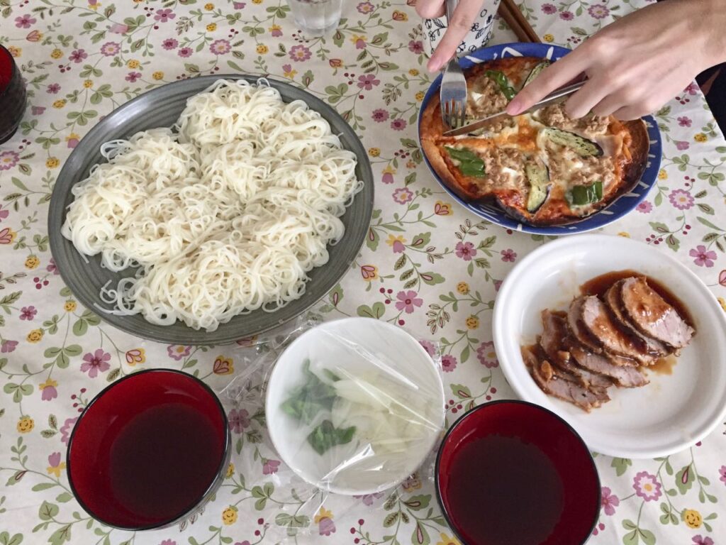 2021/05/28 昼 – そうめん、焼き豚、ピザ