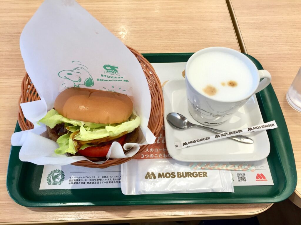 2021/04/07 昼 – モスバーガーのとびきりトマト&レタス、カフェラテ